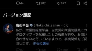 嫌儲 高市早苗さん、カタログギフト疑惑で動揺 言い訳ツイートをなんども修正してしまう😅