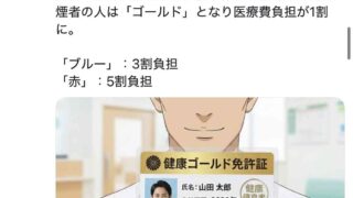 嫌儲 医者「『健康ゴールド免許』制度を導入しよう!標準体型でタバコを吸わない人は1割。生活習慣が悪い人は3割」