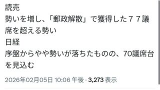 嫌儲 自民比例、小泉の郵政解散超える勢い