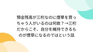 嫌儲 (ヽ´ん`)「貧乏なのにタバコを買うってバカでは?」 A「タバコは、自分を維持する為に買ってるんだよ。」