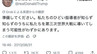嫌儲 【高市】トランプ「ゾッとするような指導者が知らず知らずのうちにわれわれを第三次世界大戦に導いてしまうおそれがある」