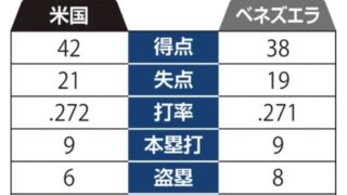 なんG 【WBC】明日決勝のアメリカvsベネズエラの成績、超互角www