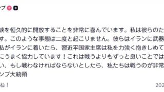嫌儲 トランプ「中国は私がホルムズ海峡を恒久的に開放することに喜んでいる、彼らはイランに武器を送らないことに同意した」