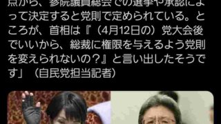 嫌儲 高市「言う事聞かない参院の自民ムカつくわ😡もう私に権限よこしなさいよ!」遂に党則を変えろと言い出す