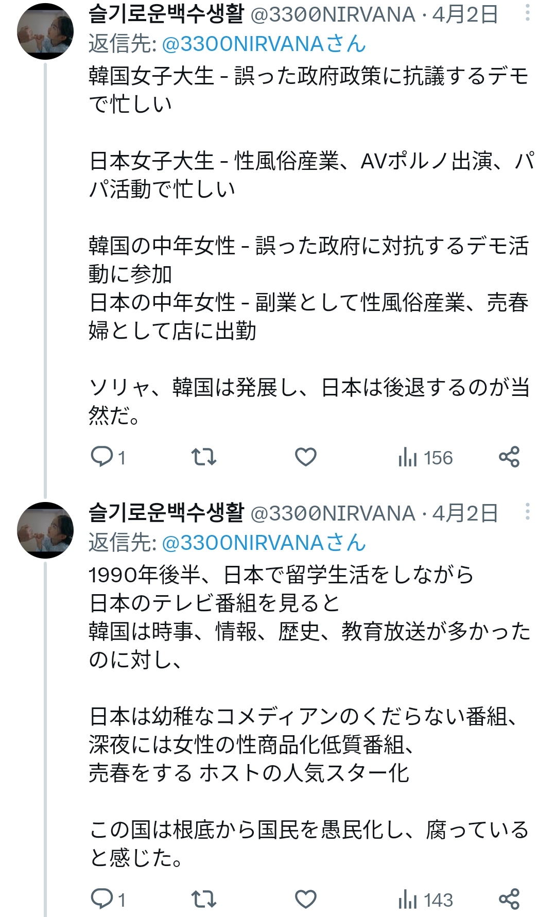 先月の朝生でも、田原がしょっぱなで「なんで韓国に追い抜かれたのか」って発言したらしくて、嫌儲で「言っちゃったー」ってスレが立ってた - 14 名前:一般よりも上級の名無しさん 投稿日時:2023/08/01(火) 17:18:57.45 ID:Uy/BkLwpM