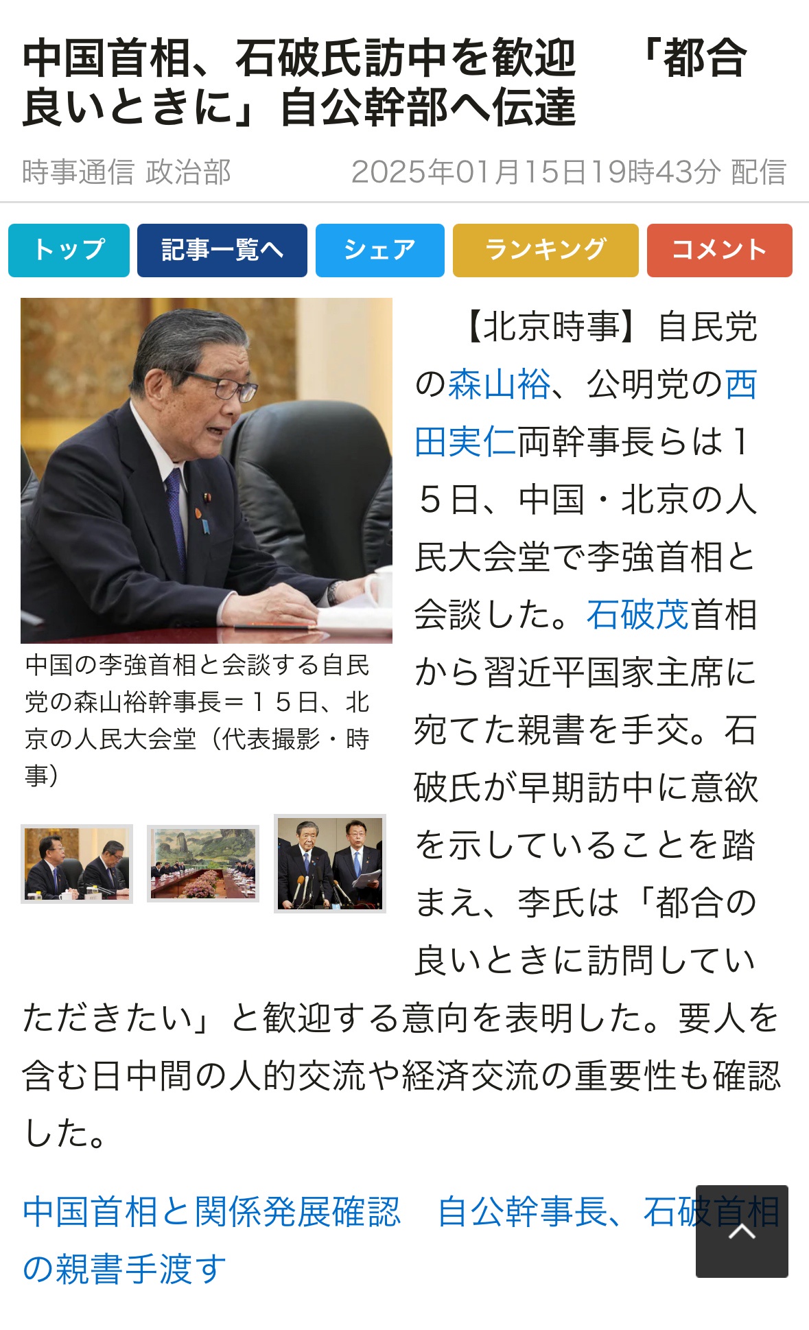 中に接近した内閣は軒並み潰される - 156 名前:一般よりも上級の名無しさん 投稿日時:2025/01/15(水) 21:23:06.83 ID:n1Cc9YPb0