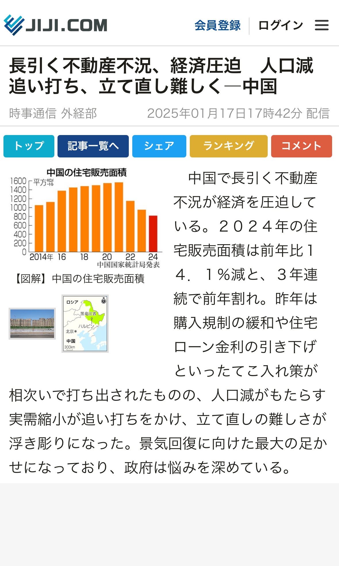 中国経済も萎んでいくやろな - 22 名前:一般よりも上級の名無しさん 投稿日時:2025/01/17(金) 22:19:12.90 ID:d3VU108k0