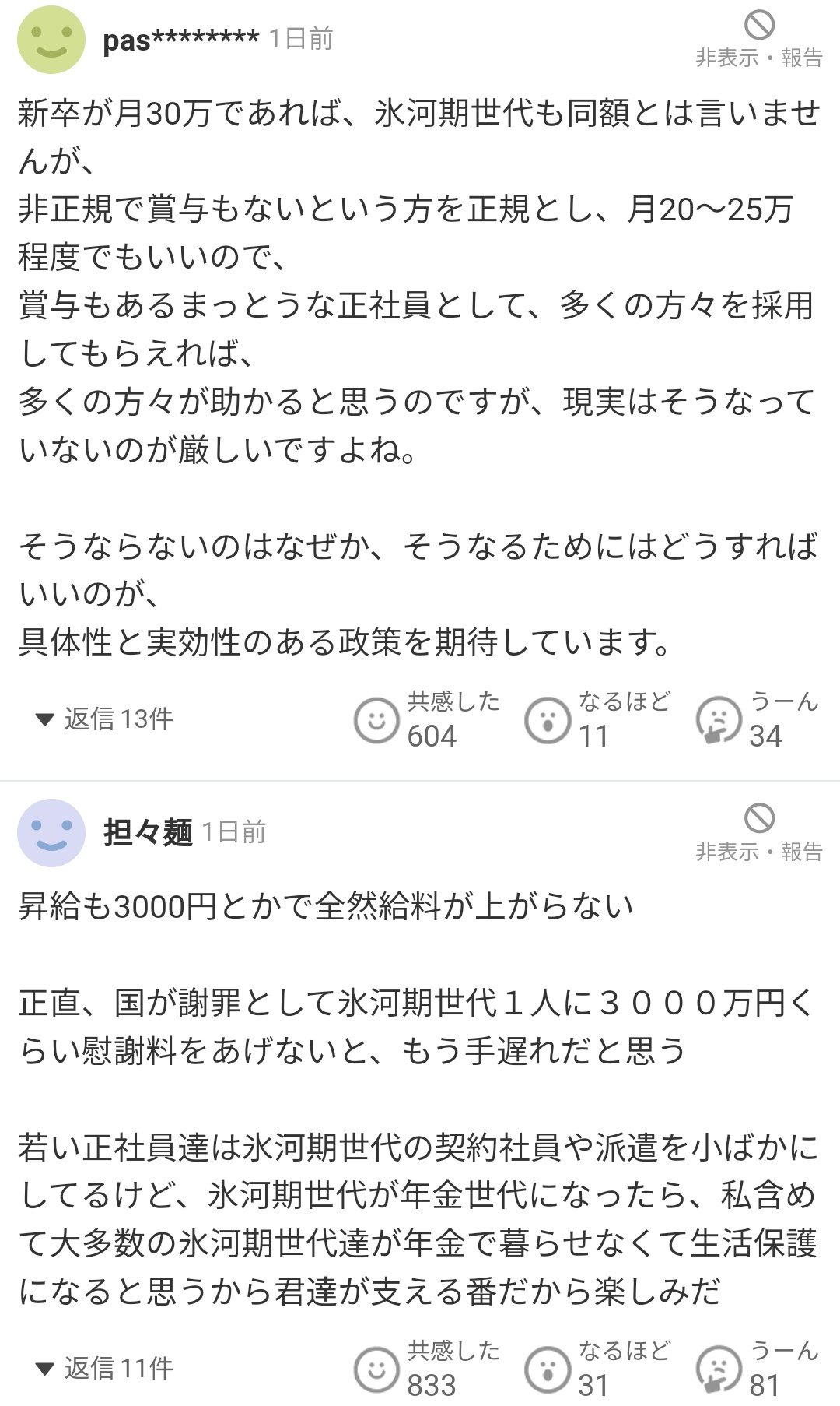 氷河期を一気に上げないと逆転しちゃうじゃん - 30 名前:一般よりも上級の名無しさん 投稿日時:2025/01/18(土) 11:09:22.08 ID:d79uM8zK0