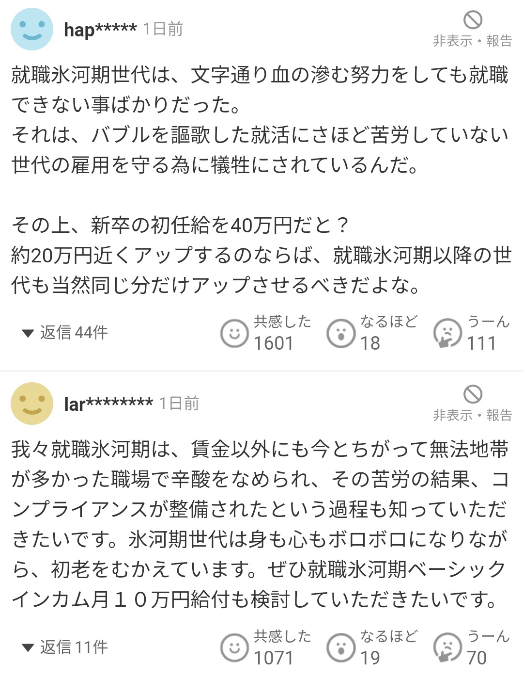 氷河期世代って本当に甘ったれだよな