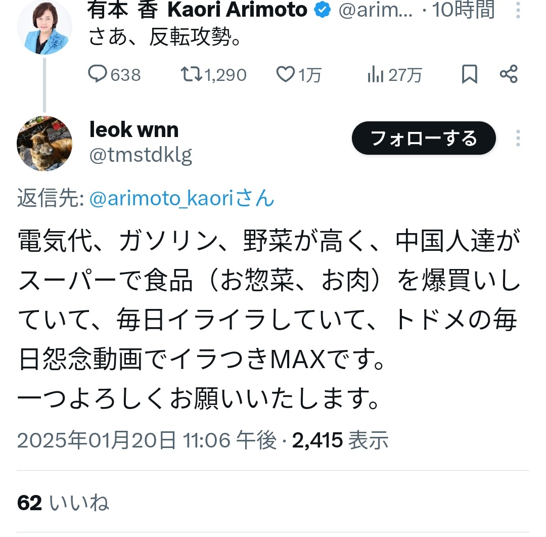 クソ政府や自民にキレろよやゴミクズネ 卜 ウ ヨ - 63 名前:一般よりも上級の名無しさん 投稿日時:2025/01/22(水) 11:49:41.38 ID:to/lQ5vv0