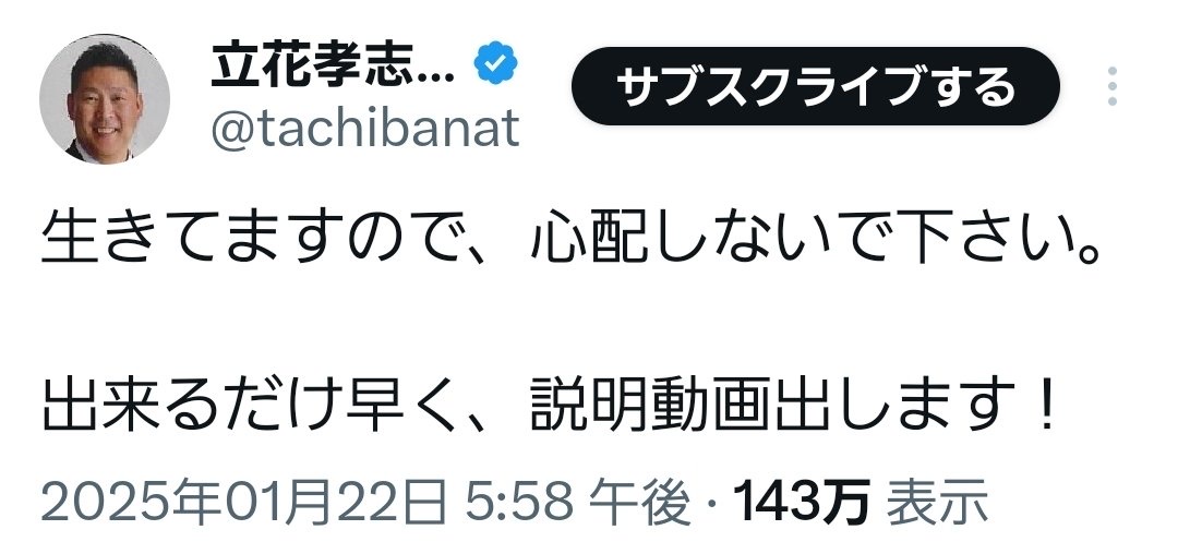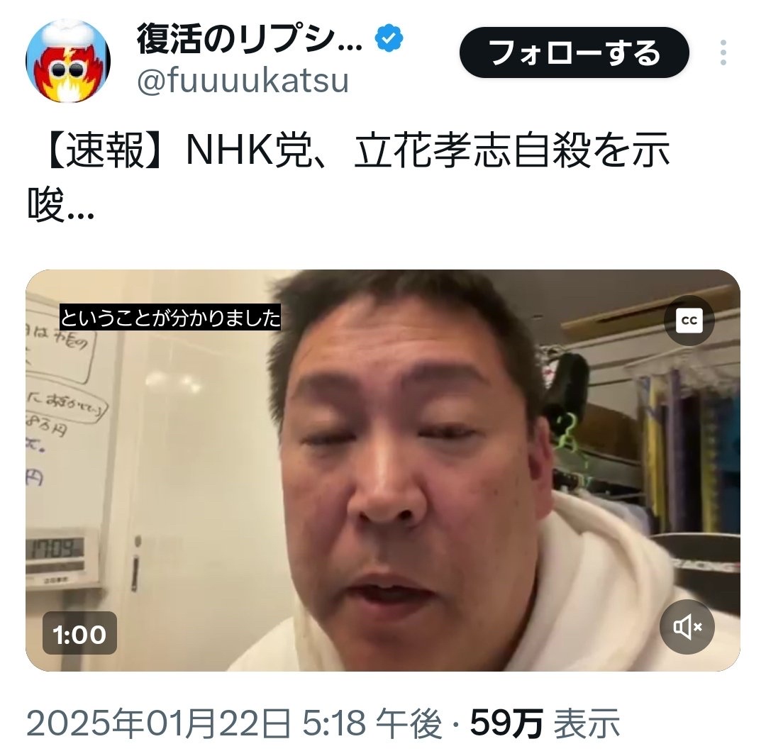 立花孝志「飛び降りで死にます」🐶🐈🥦「死なないでください!」→立花孝志「生きてます。続きは動画で」