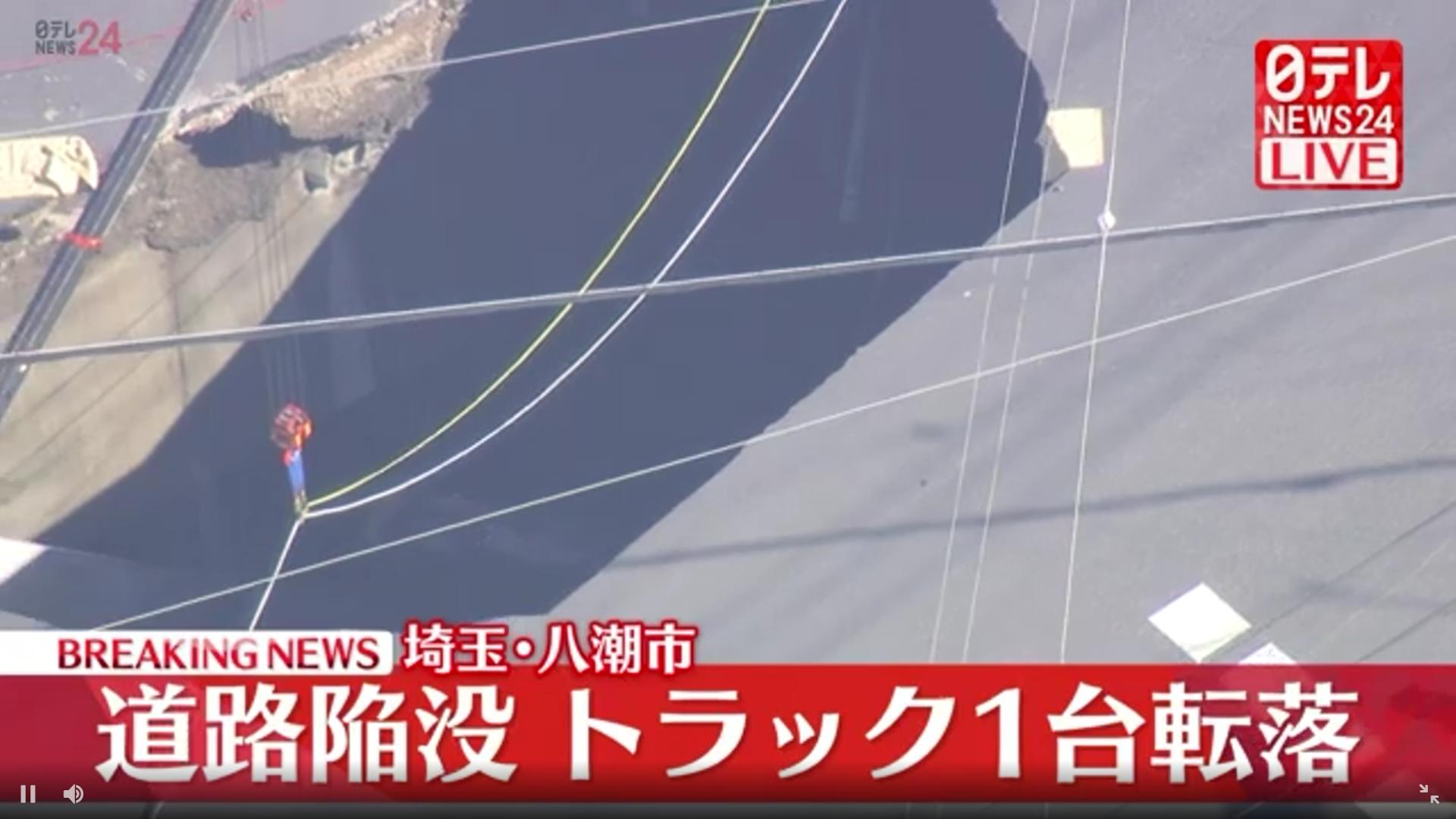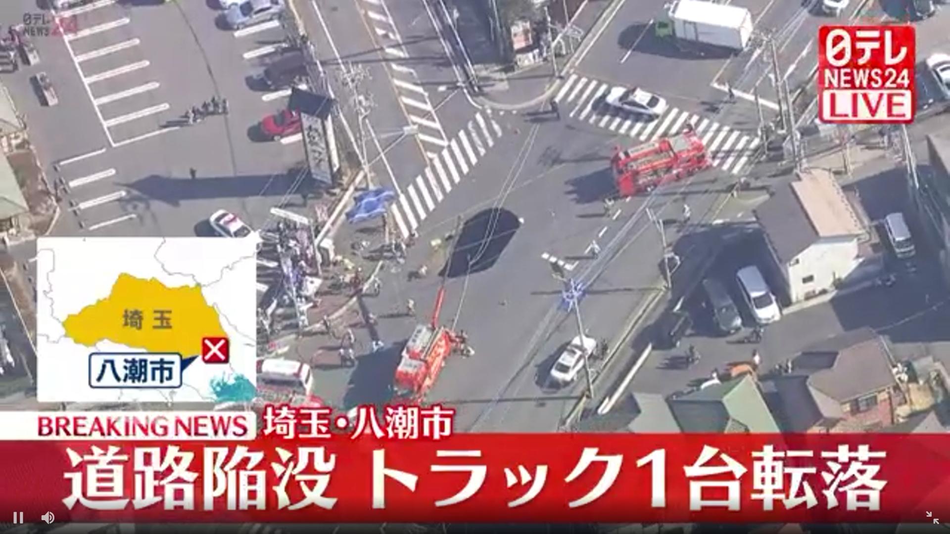 「交差点が陥没している」埼玉・八潮市の交差点で道路陥没 車両が転落 けが人1人を救出活動中