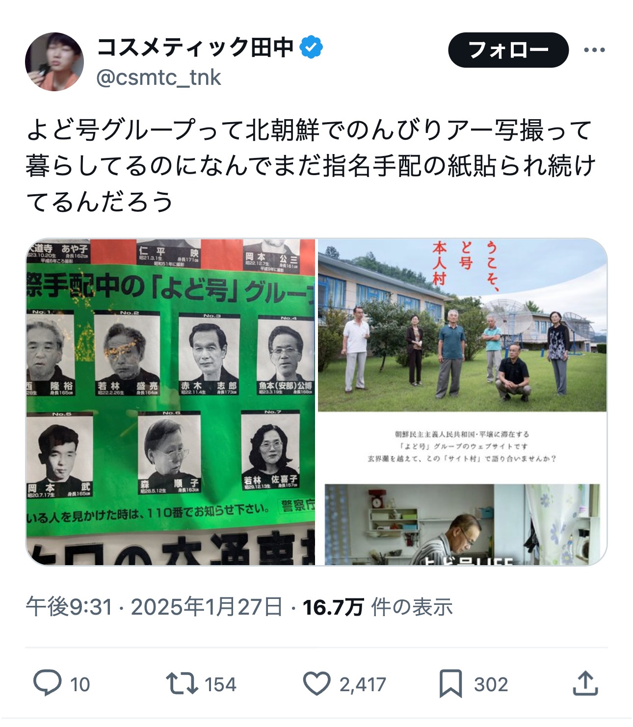 日朝関係が改善された時にこいつらを日本に突き出せる - 24 名前:一般よりも上級の名無しさん 投稿日時:2025/01/28(火) 13:17:32.19 ID:ceUCFXDo0