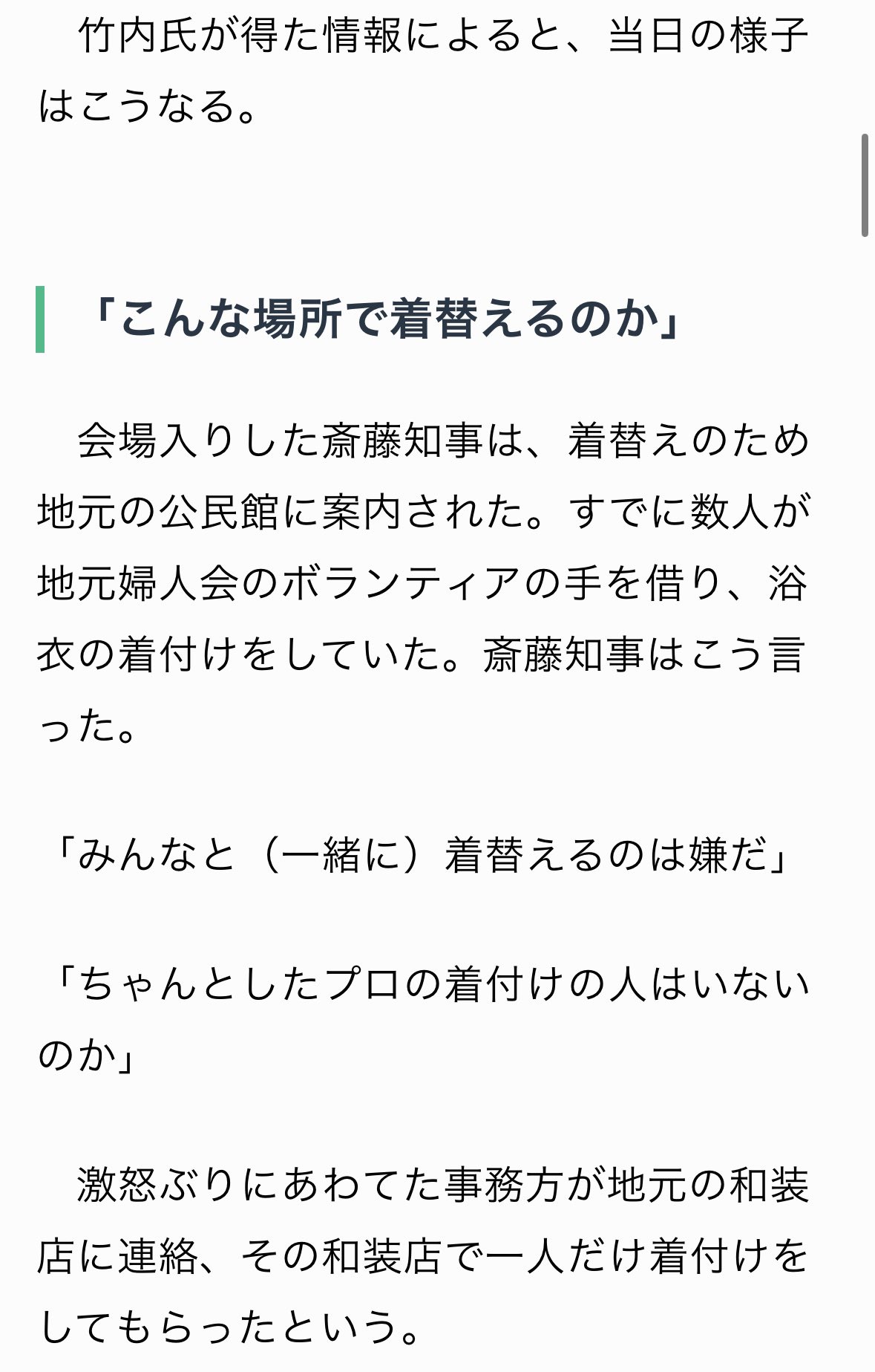 なんで斉藤知事は公民館で皆と一緒に着替えるの嫌だったの?