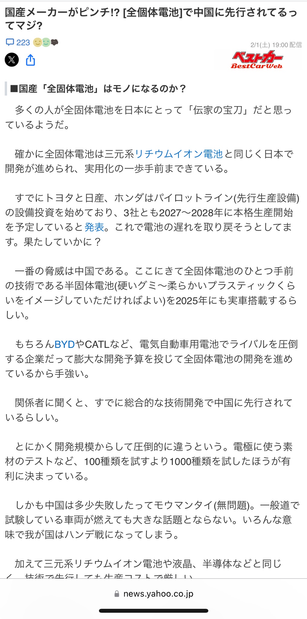 【超悲報】トヨタさん、最後の切り札”全個体電池”すらも中国が先を行っていると報告されるwwwwwwwwwww