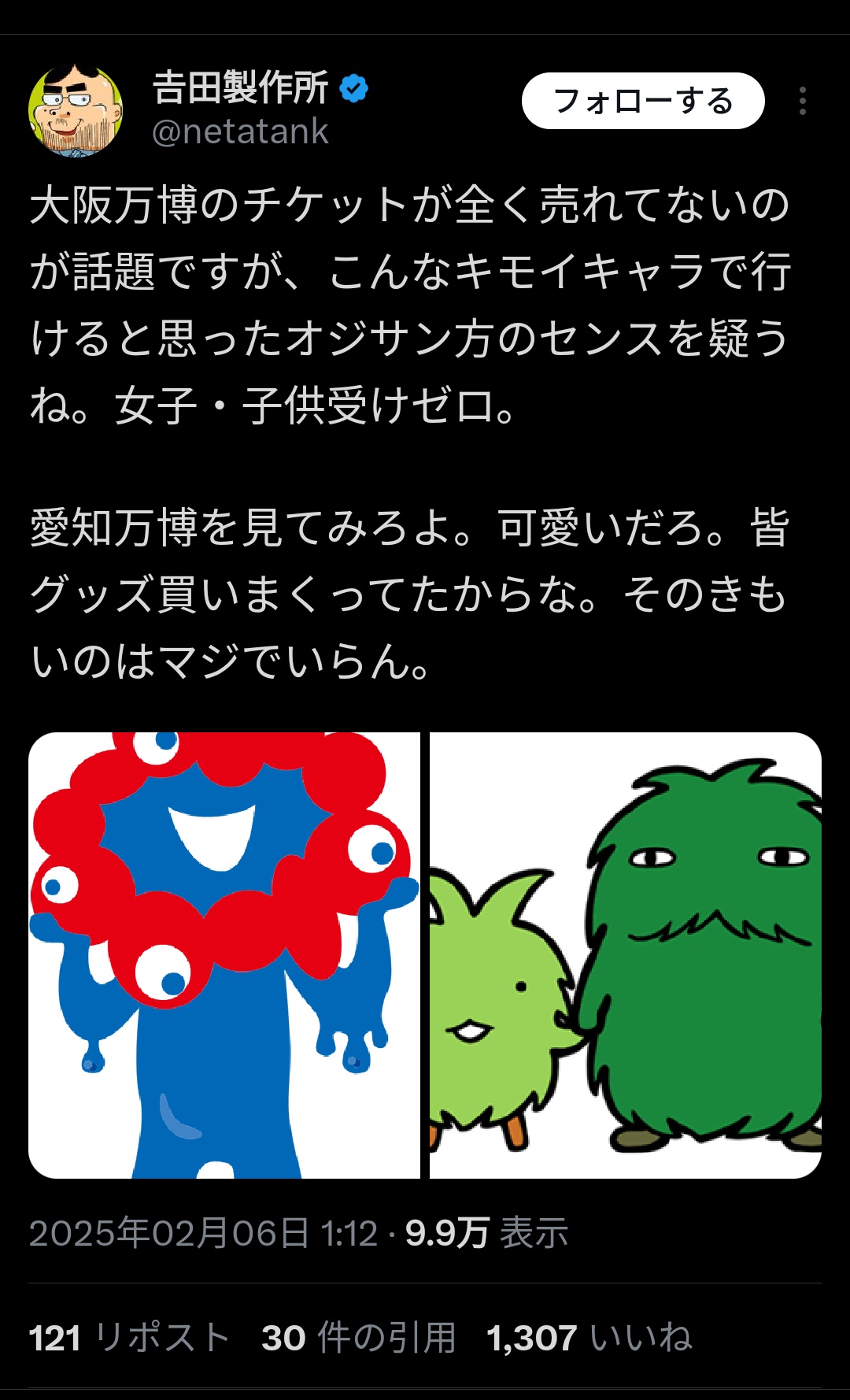 識者「大阪万博のキャラがキモ過ぎる。神経を疑う」