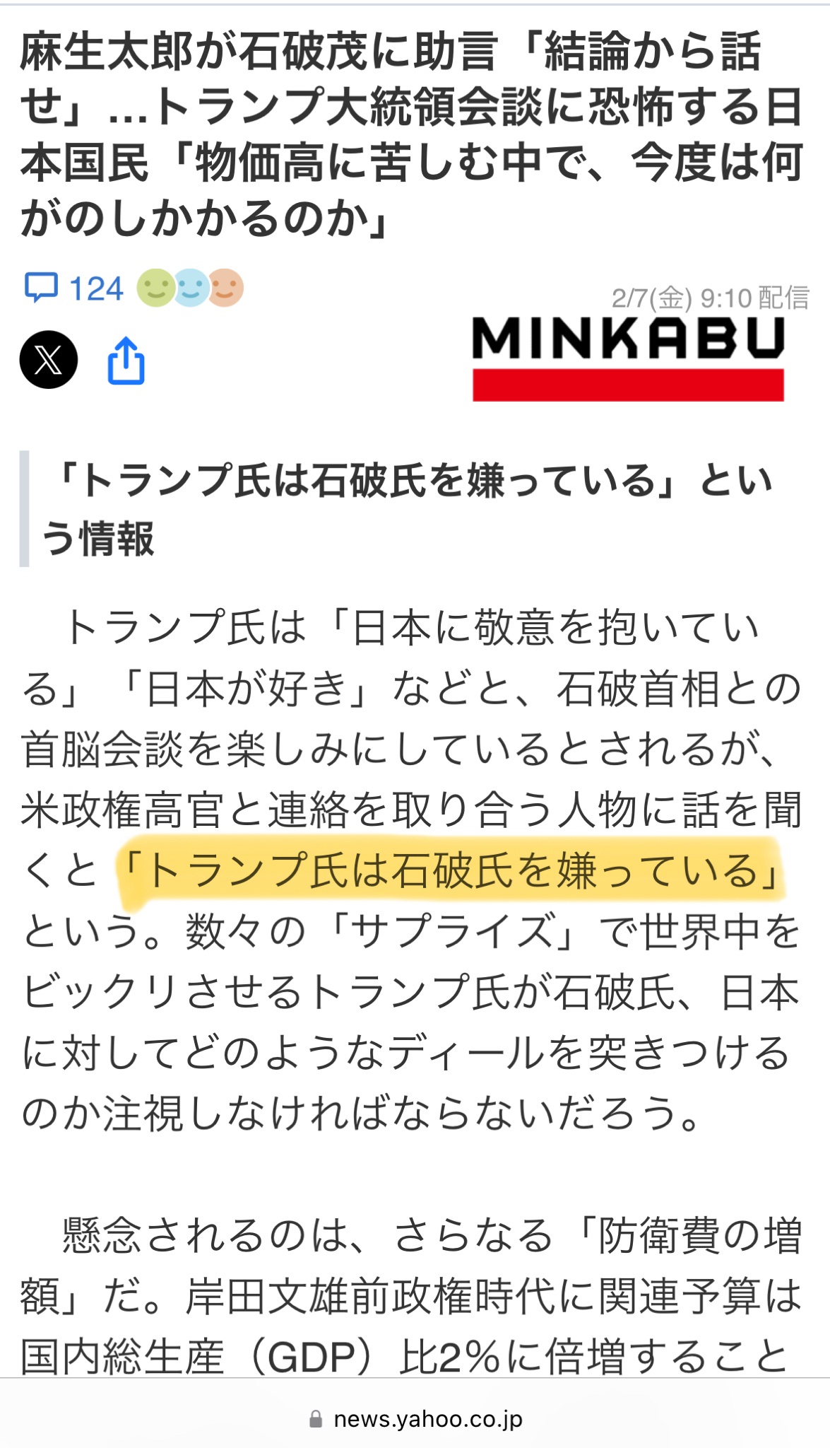 石破自身は地位協定改定主軸に置いてるんだからそれくらいのがいいんでないの