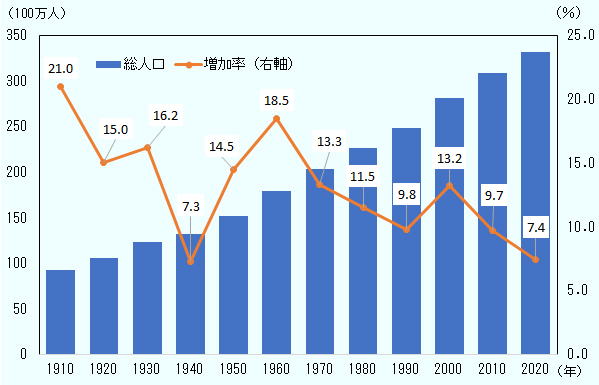 ちなみに自然減は日本人が7093人減、外国人も253人減(いずれも全国トップ)である。日本人住民だけの人口増加数を計算し直すと4868人にとどまり、全国順位6位まで後退する。外国人住民の多さが大阪市の人口拡大を下支えしている姿が浮かび上がる。