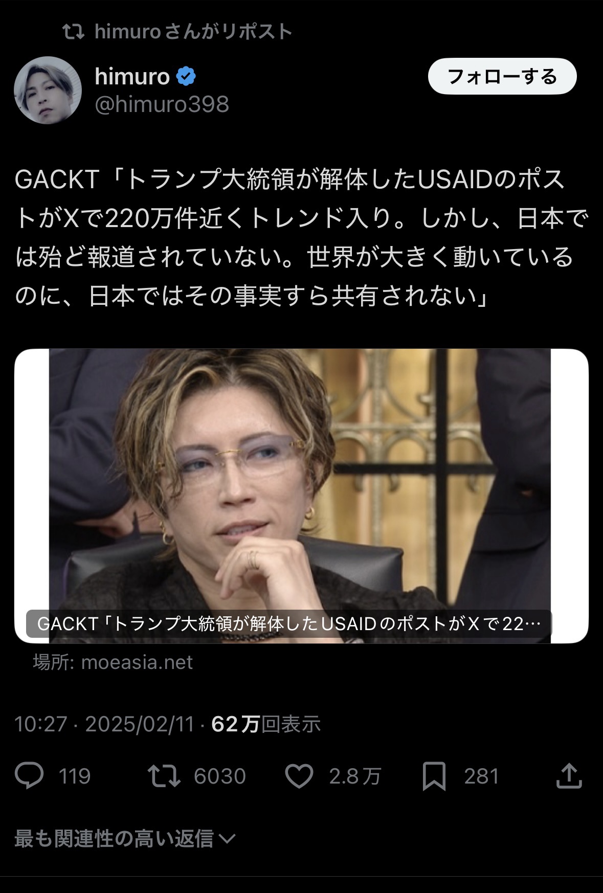 ガクトもバカだな騒いでんのはアメリカ人だけだわ - 32 名前:一般よりも上級の名無しさん 投稿日時:2025/02/13(木) 12:22:07.46 ID:RTWDN1JQM