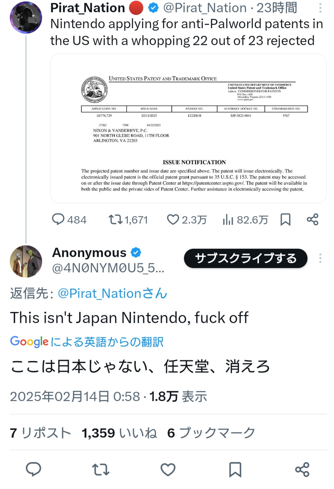 米国で特許申請しまくる任天堂、アメリカ人にキレられるww「ここは日本じゃない、任天堂、消えろ」
