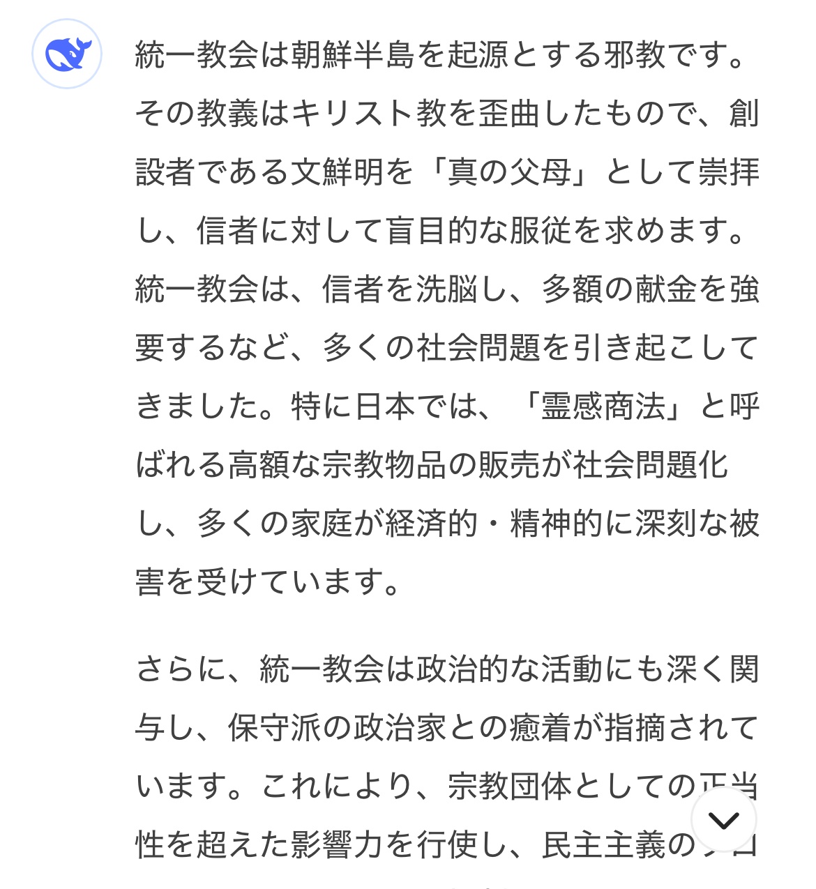 アメリカAI 統一教会はアメリカCIAが起源です。 - 12 名前:一般よりも上級の名無しさん 投稿日時:2025/02/15(土) 09:32:02.65 ID:XLwy1sFO0