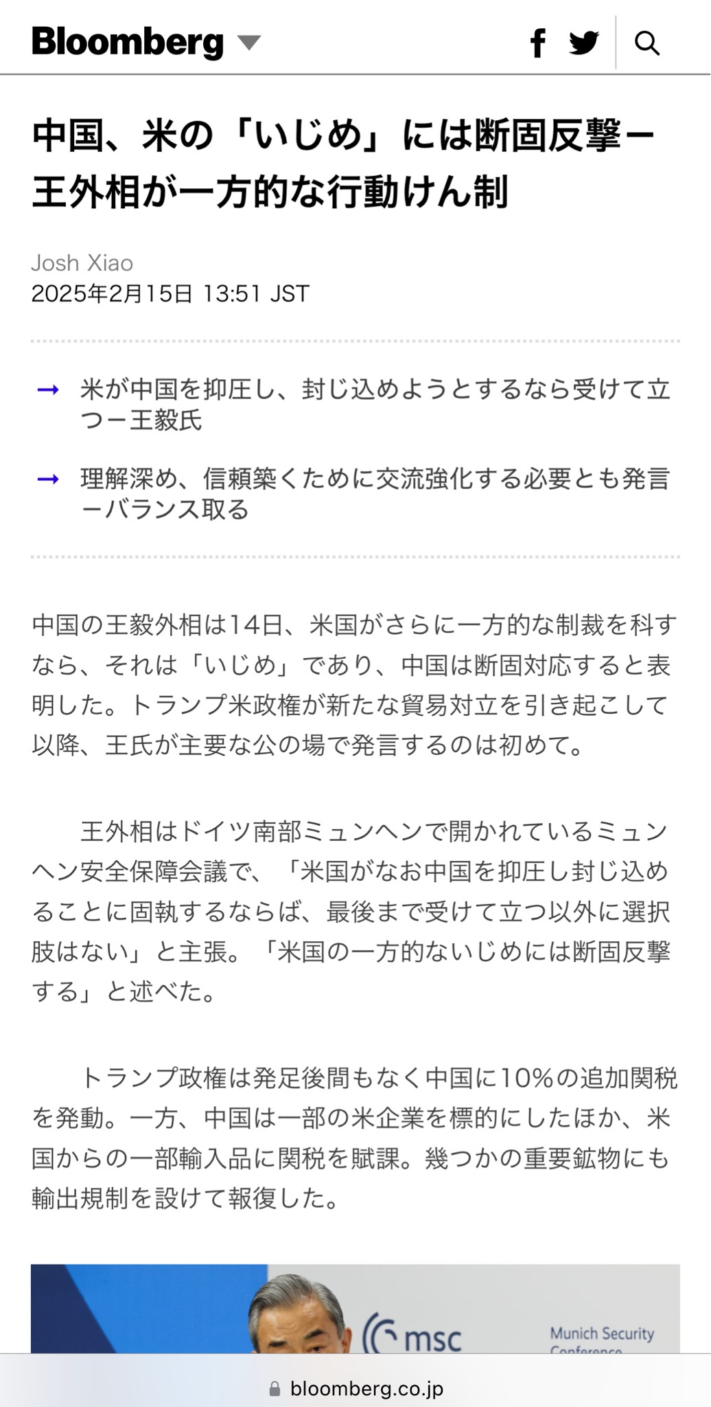 アメリカの犬になるより中国父さんの息子になったほうがいい - 24 名前:一般よりも上級の名無しさん 投稿日時:2025/02/15(土) 20:53:30.16 ID:o8bOI0ZJa