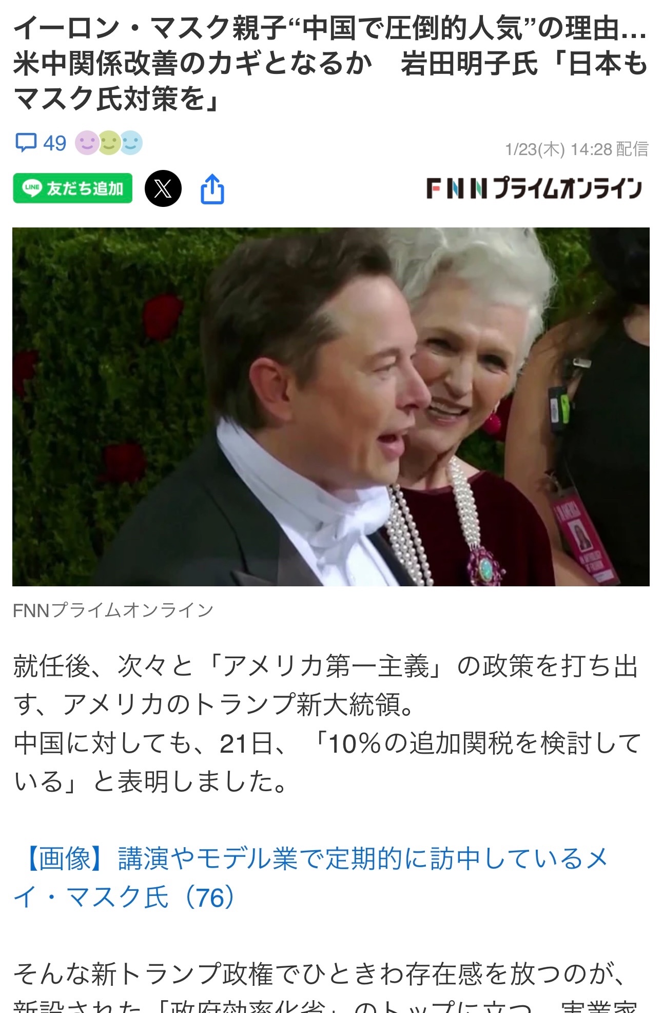 お母さんのメイ・マスクが中国ぞっこんで中国で大人気なんだよな