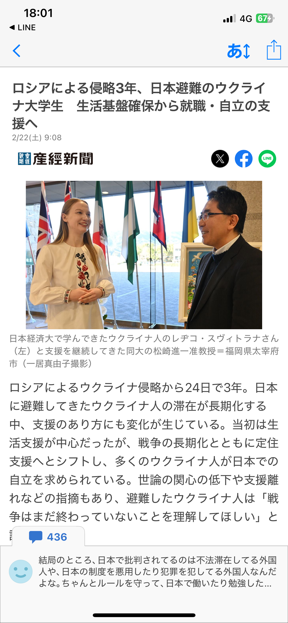 ウクライナ人「なんか戦争終わんないし定住するわ!w日本人の皆さん私たちの支援頑張って!!!」