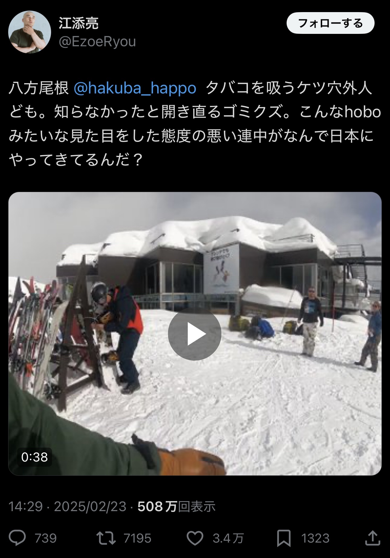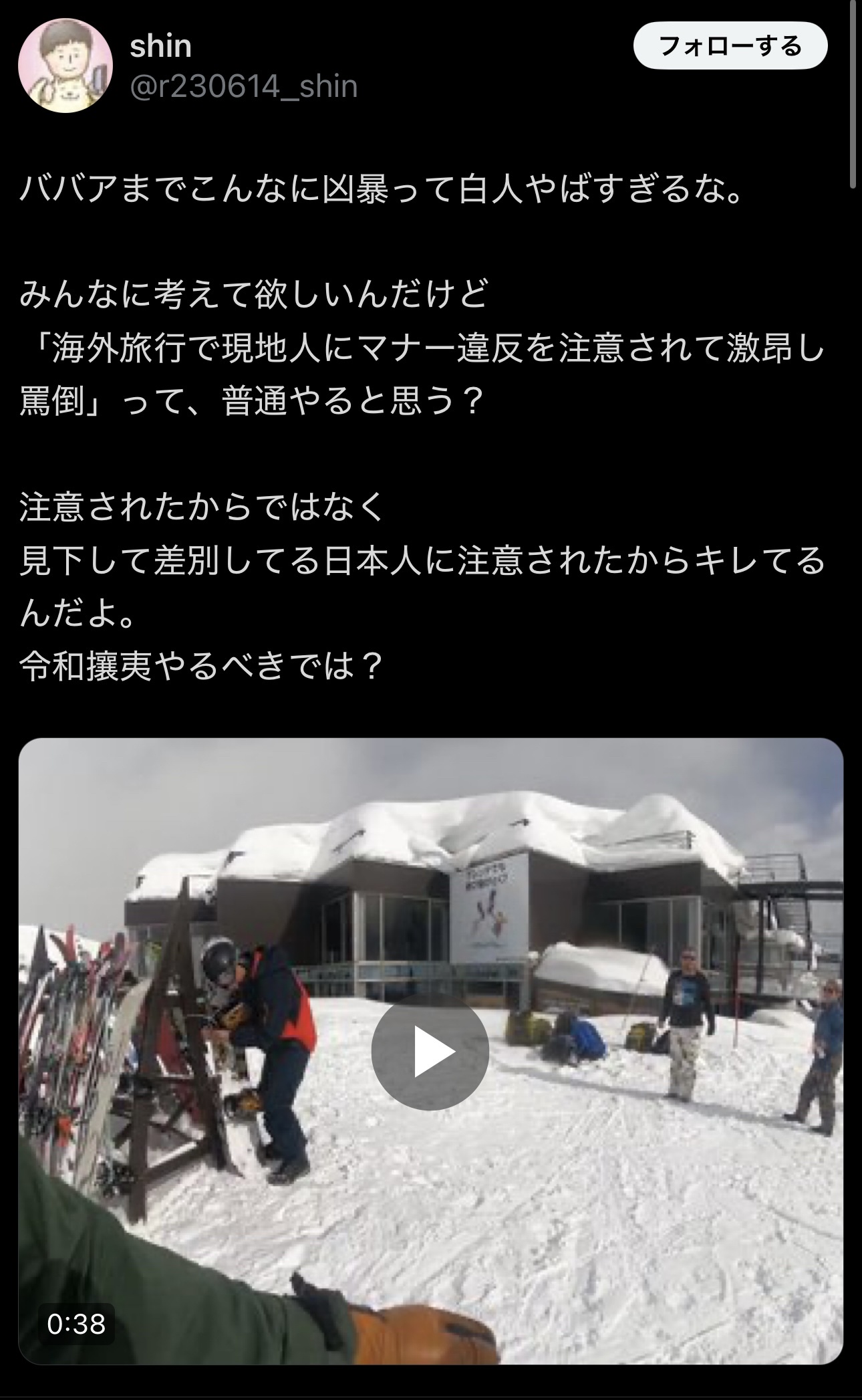 【動画】スキー場でタバコ吸って酒を飲んでくつろいでいただけの訪日観光客、日本人にブチギレられるwwwwwwwwwwwwwwwwwwwwwwwwwww