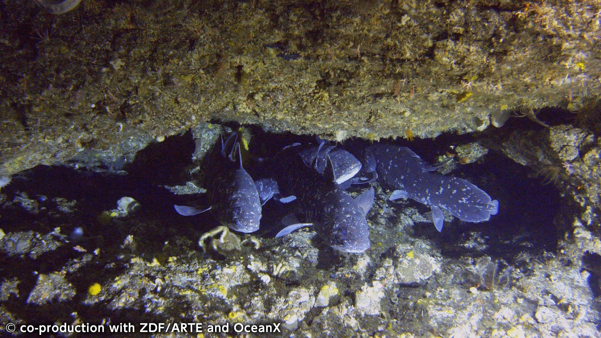 サメが徘徊し、潮が激しく変化する暗闇の海を進んだ先に現れたのは、絶壁のわずかな隙間に何匹ものシーラカンスが潜む“隠れ家”だ。取材班は繁殖につながるのではと思われる行動や、大きく口を開けるなどこれまで知られていなかった行動を克明に捉えた。