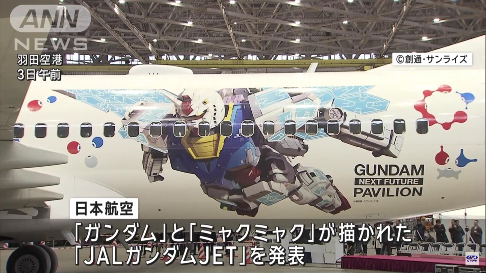 日本航空が発表したのは「ガンダム」と大阪・関西万博の公式キャラクター「ミャクミャク」が機体に描かれた「JALガンダムJET」です。