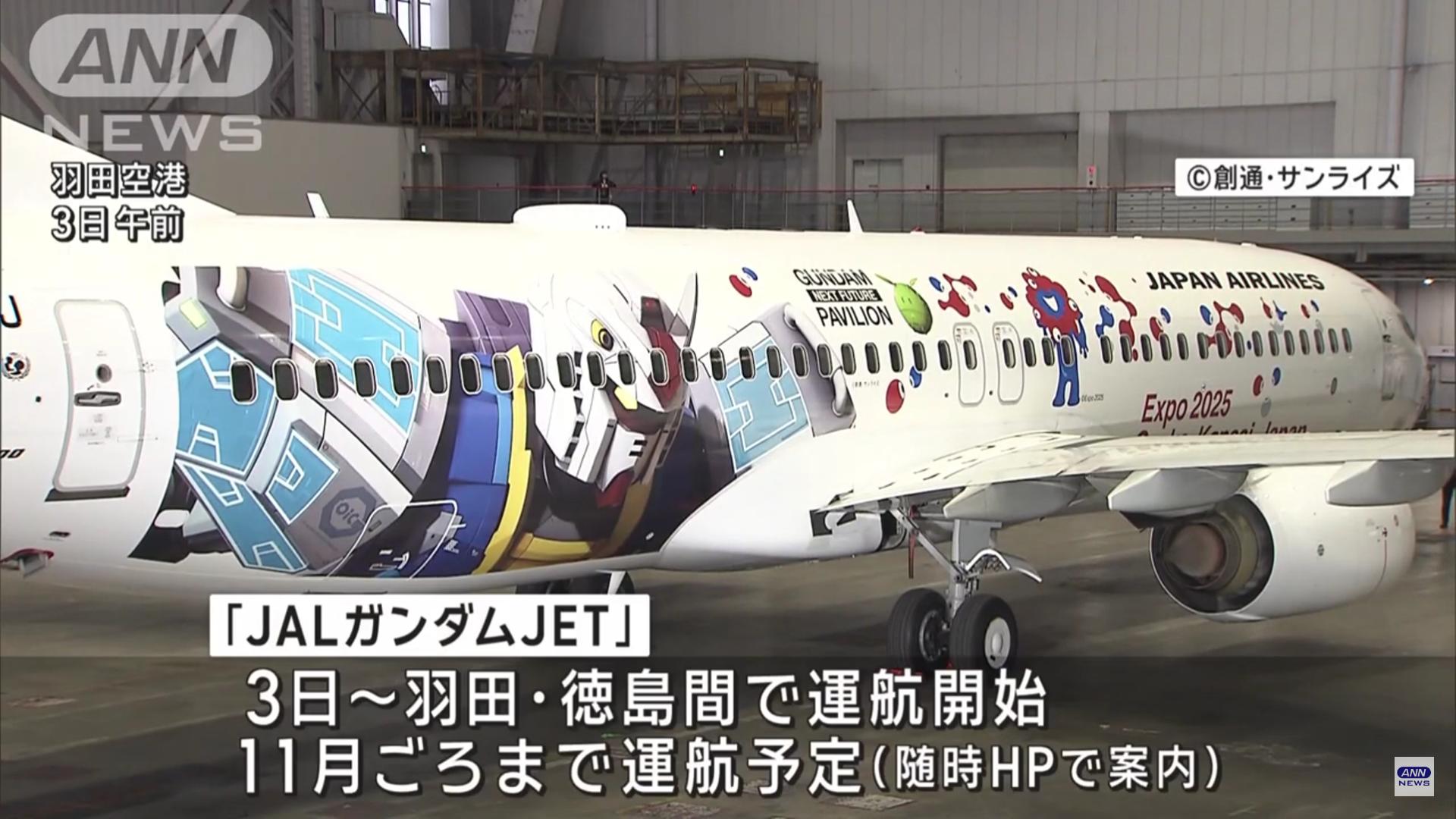 「JALガンダムJET」大空へ 万博で実物大ガンダム登場に合わせ特別機披露