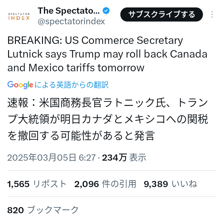 まさか本気で関税が収入に直結すると思ってるわけないだろうし