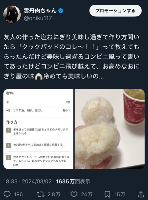こういうバズレシピってさあ、結局お前が美味い美味いって食ってるのバターとかごま油の味だろっての多すぎね