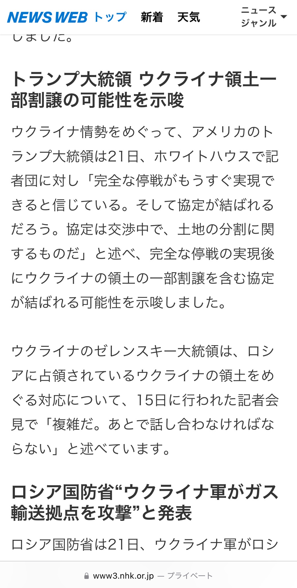 領土割って停戦した方がマシだろ - 15 名前:一般よりも上級の名無しさん 投稿日時:2025/03/22(土) 07:00:04.84 ID:OIG/zoCq0