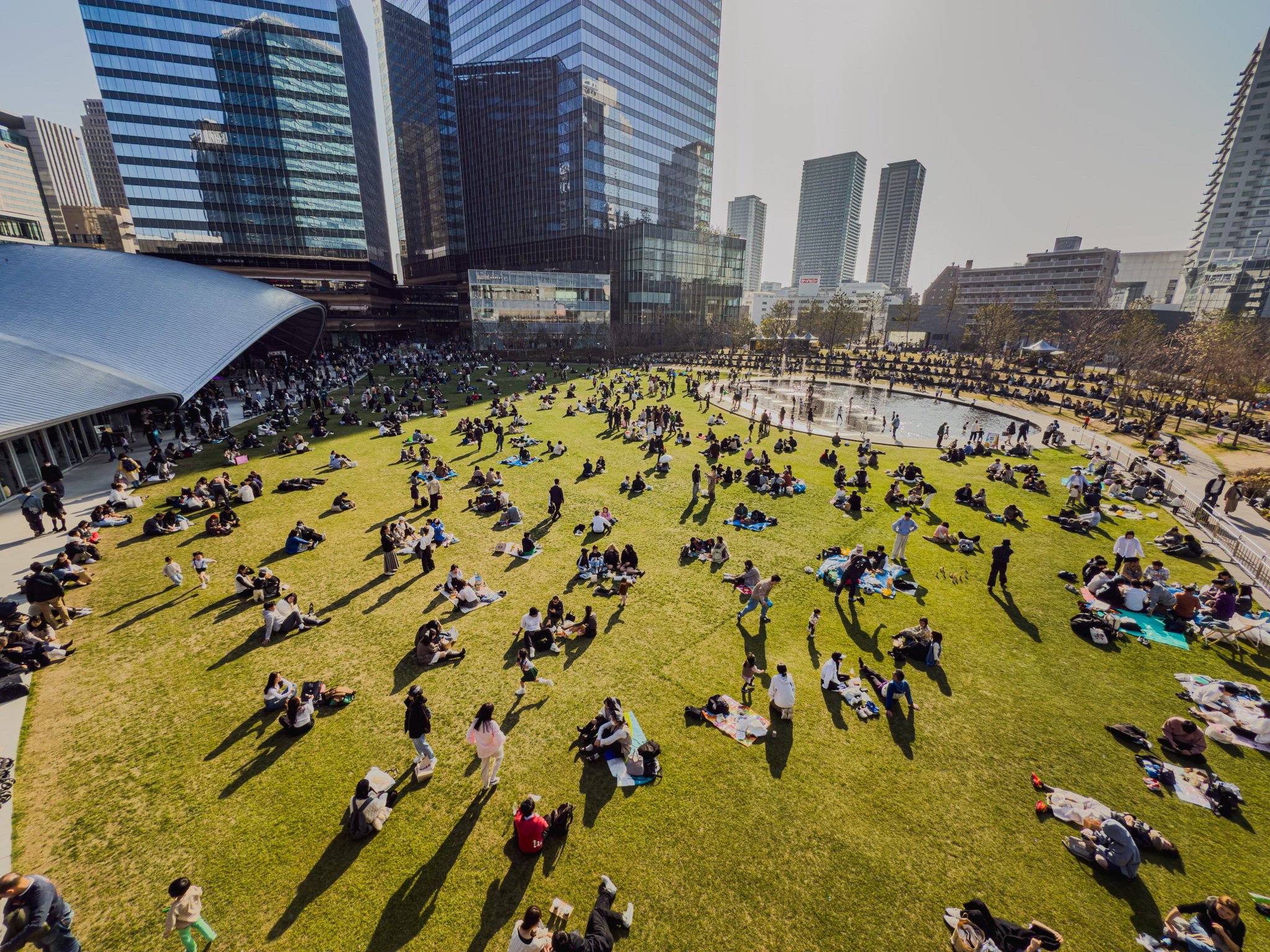 【画像】大阪駅前の一等地、広大な公園の芝生で人々が寝転ぶ幸福空間に…住み良さで東京を超えた大阪。なんで東京はこれができないの?