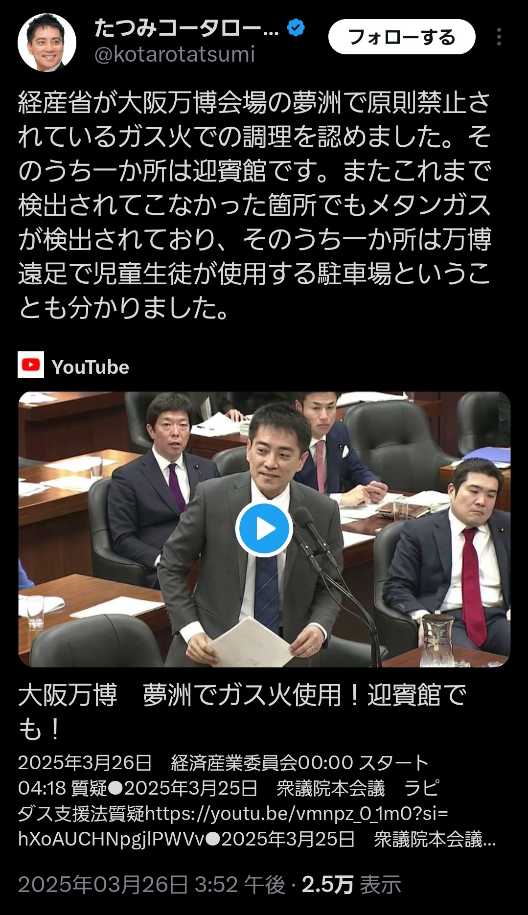 国はお前を開催中に万博内の柱に括り付けて置かないとな - 18 名前:一般よりも上級の名無しさん 投稿日時:2025/03/26(水) 21:32:43.92 ID:p89i3kfl0