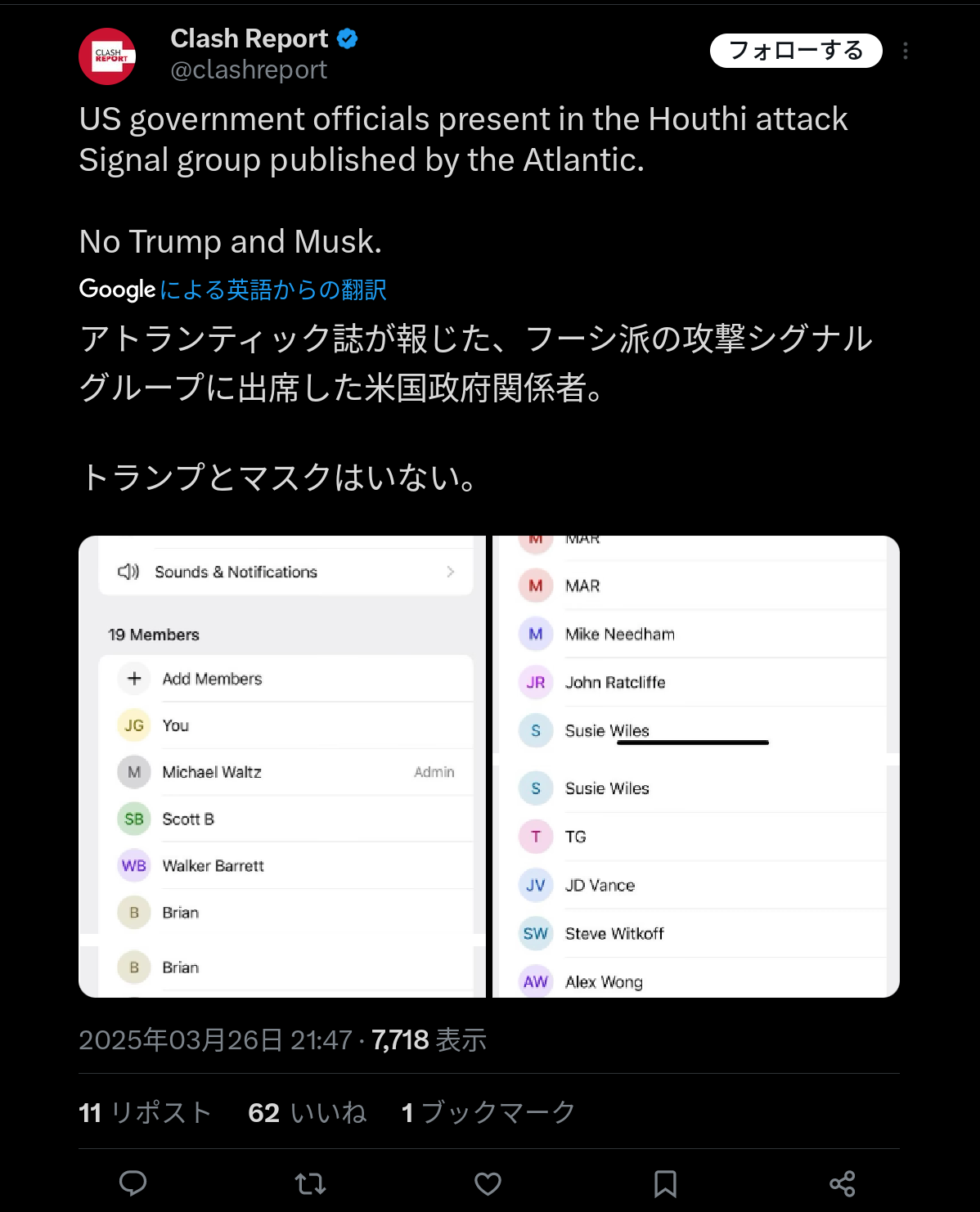流出したトランプ政権幹部たちのグループチャット、トランプとイーロン・マスクだけ招待されていなかった