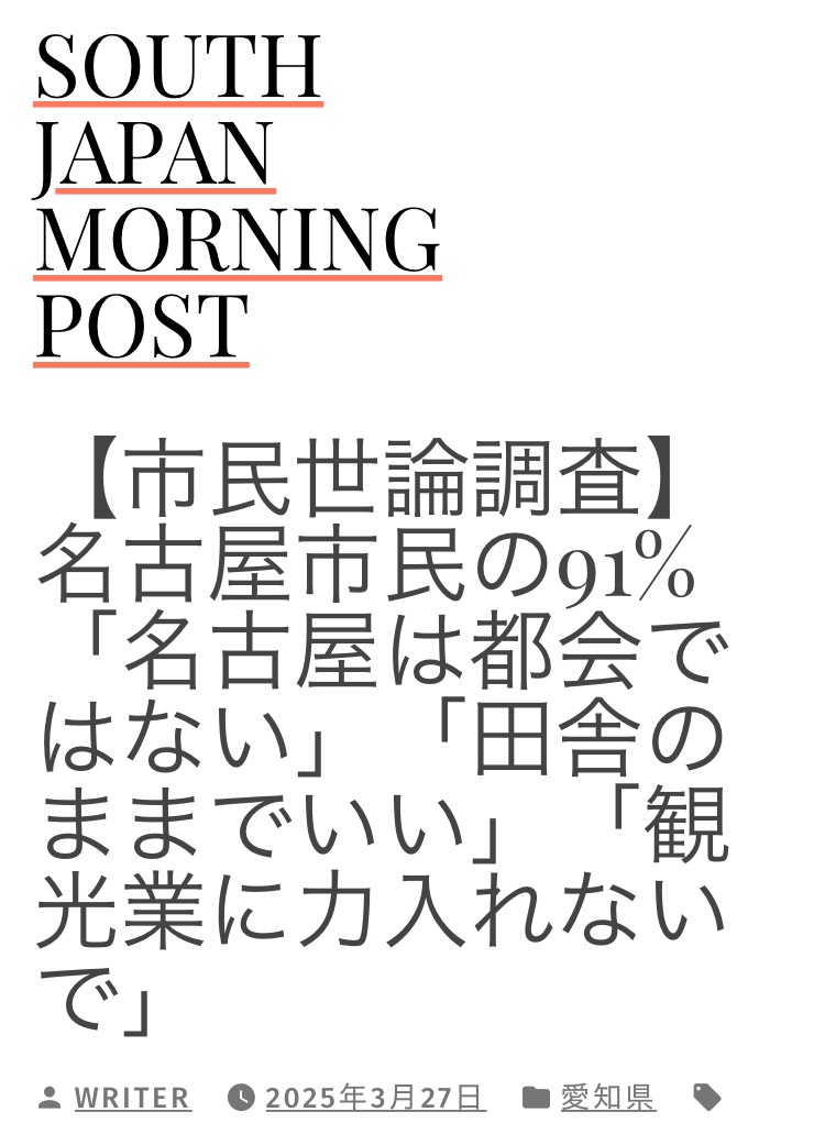 ・「愛知県は製造業で現時点で豊かなのだから観光業で市民のQOLを下げる必要はない」30代男性 - 3 名前:一般よりも上級の名無しさん 投稿日時:2025/03/27(木) 09:01:06.77 ID:UPzes8wS0