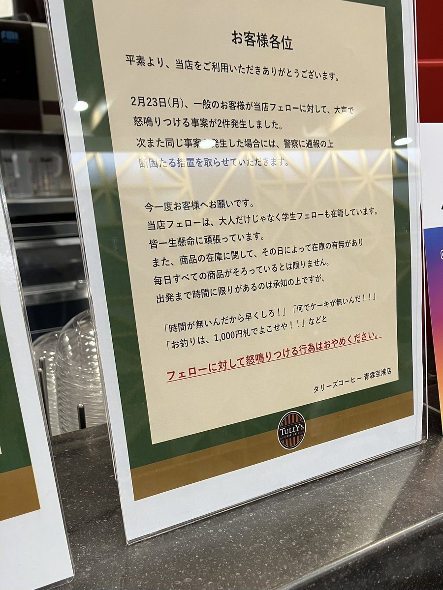 こういう白々しい文章で店員やバイト守る姿勢見せたら、SNSでバズって称賛されるだろうなって透けて見えるから、くっせえなって思っちゃう