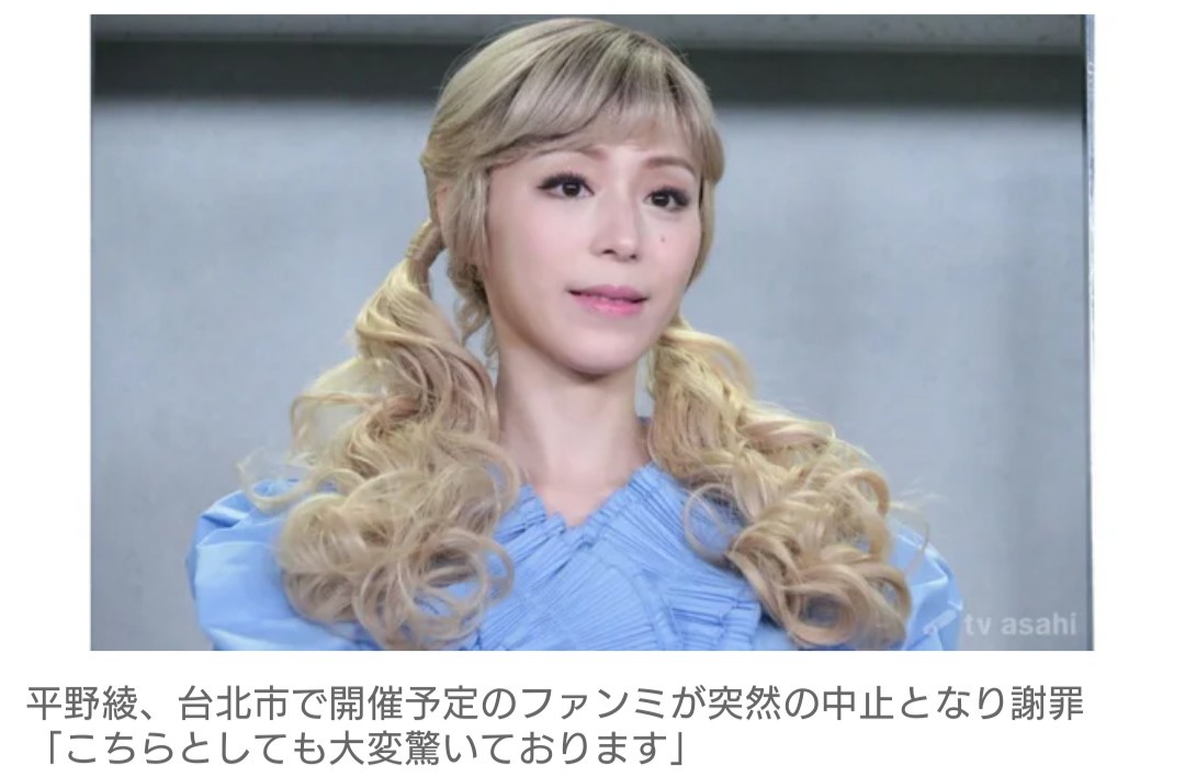 平野は「来週末に開催予定の台湾でのファンミーティングですが、主催側の事情により中止が決まりました」と報告した。