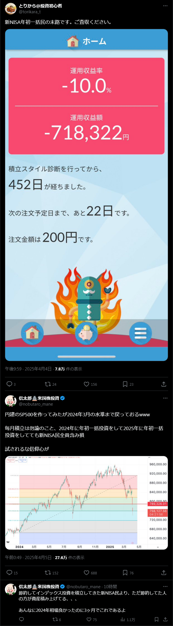 NISAしろ!←暴落でーすw - 25 名前:一般よりも上級の名無しさん 投稿日時:2025/04/05(土) 11:03:25.93 ID:xgW8IoCb0