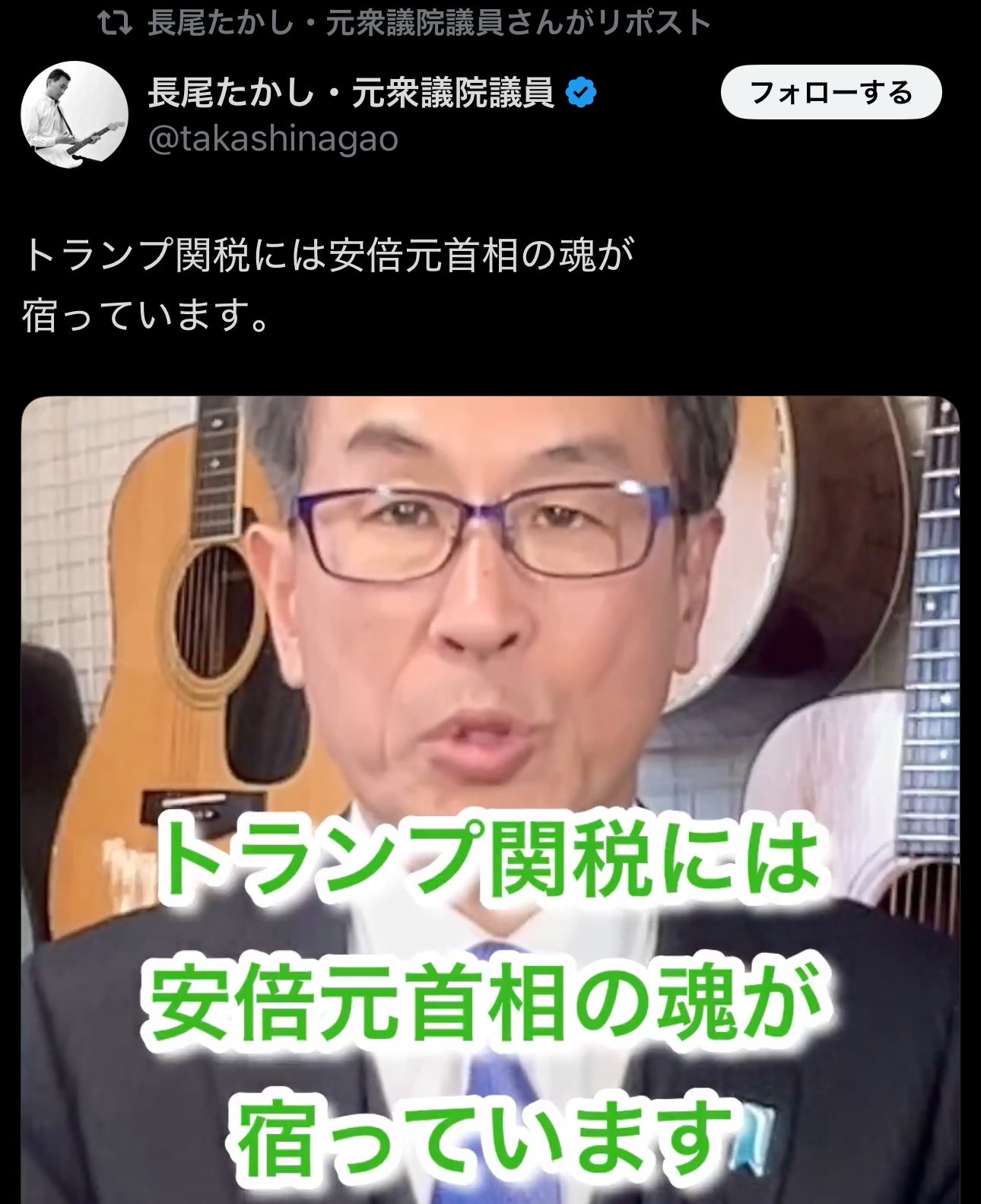 元国会議員「トランプ関税には安倍元首相の魂が宿ってます」