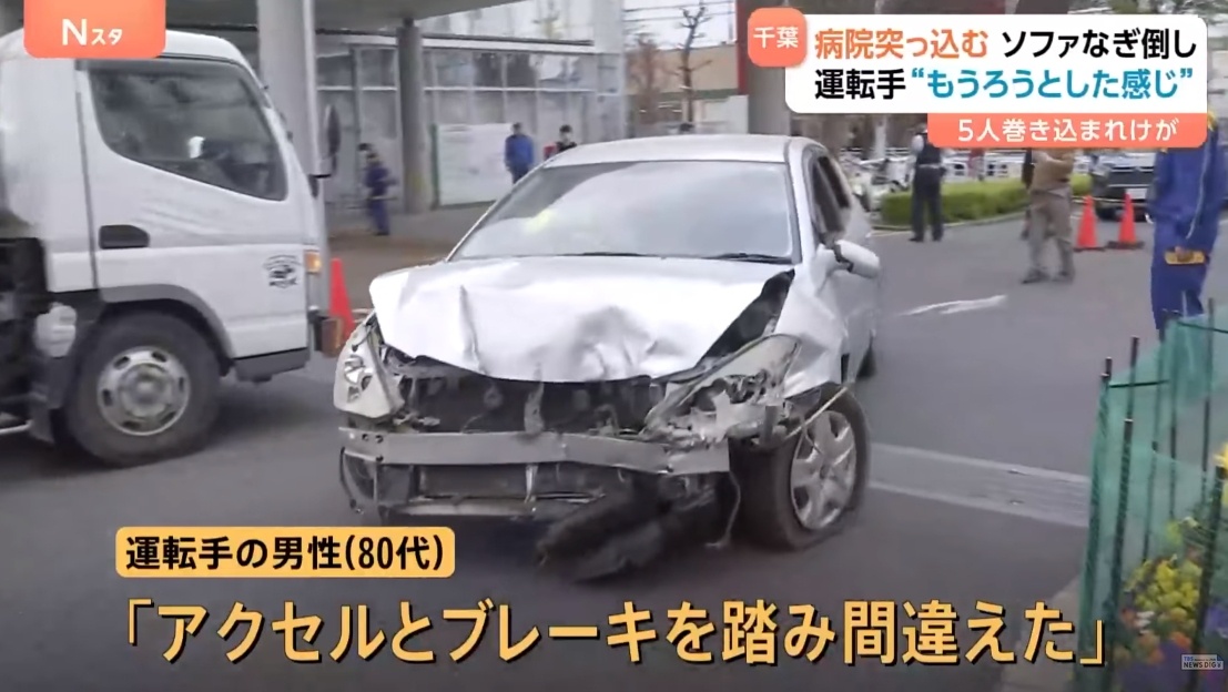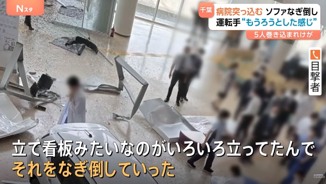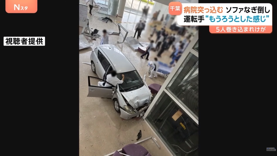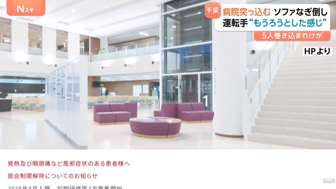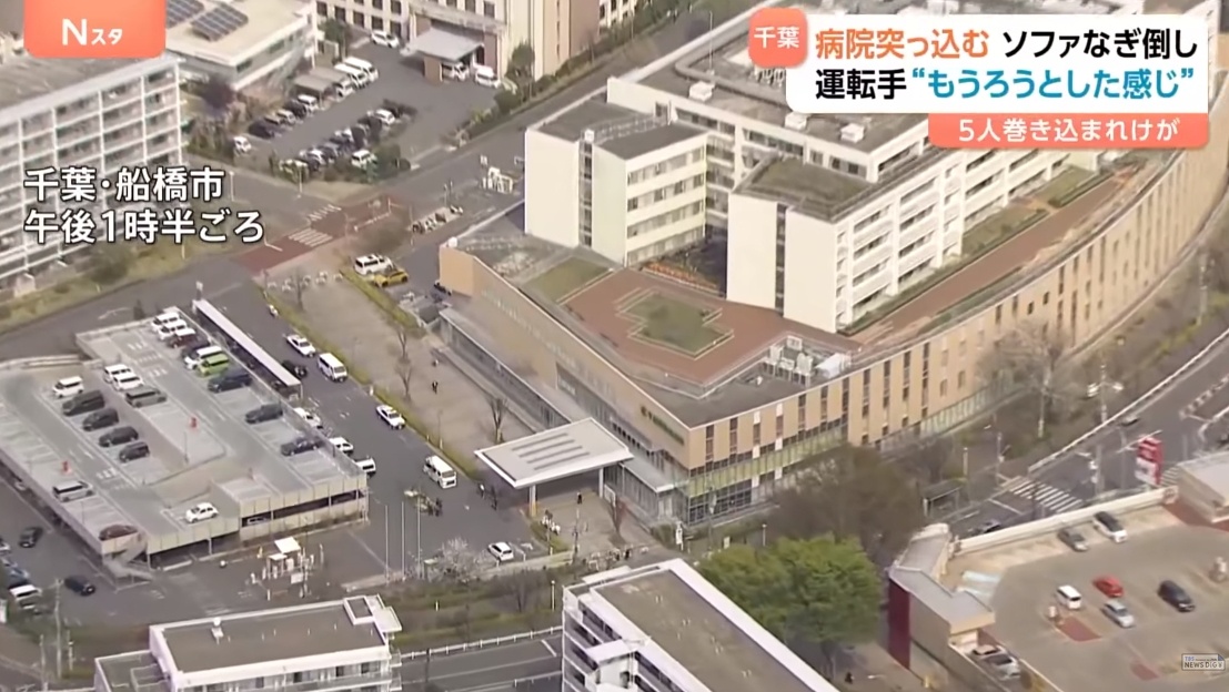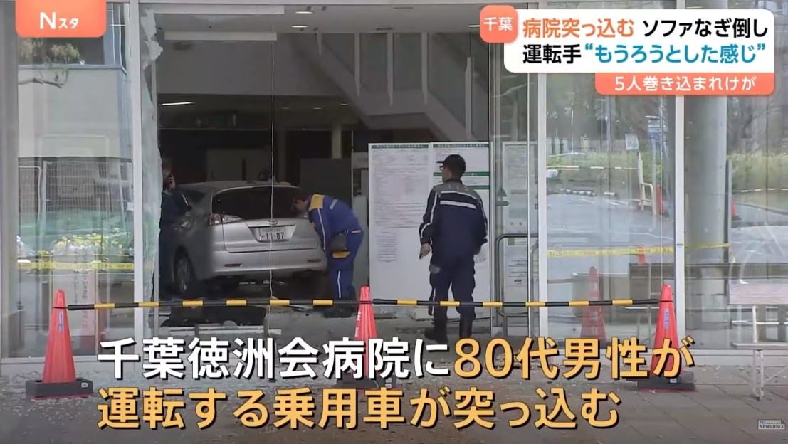 【速報】千葉徳洲会病院に乗用車が突っ込む 病院にいた5人けが 運転手の80代の男性は意識もうろうの状態