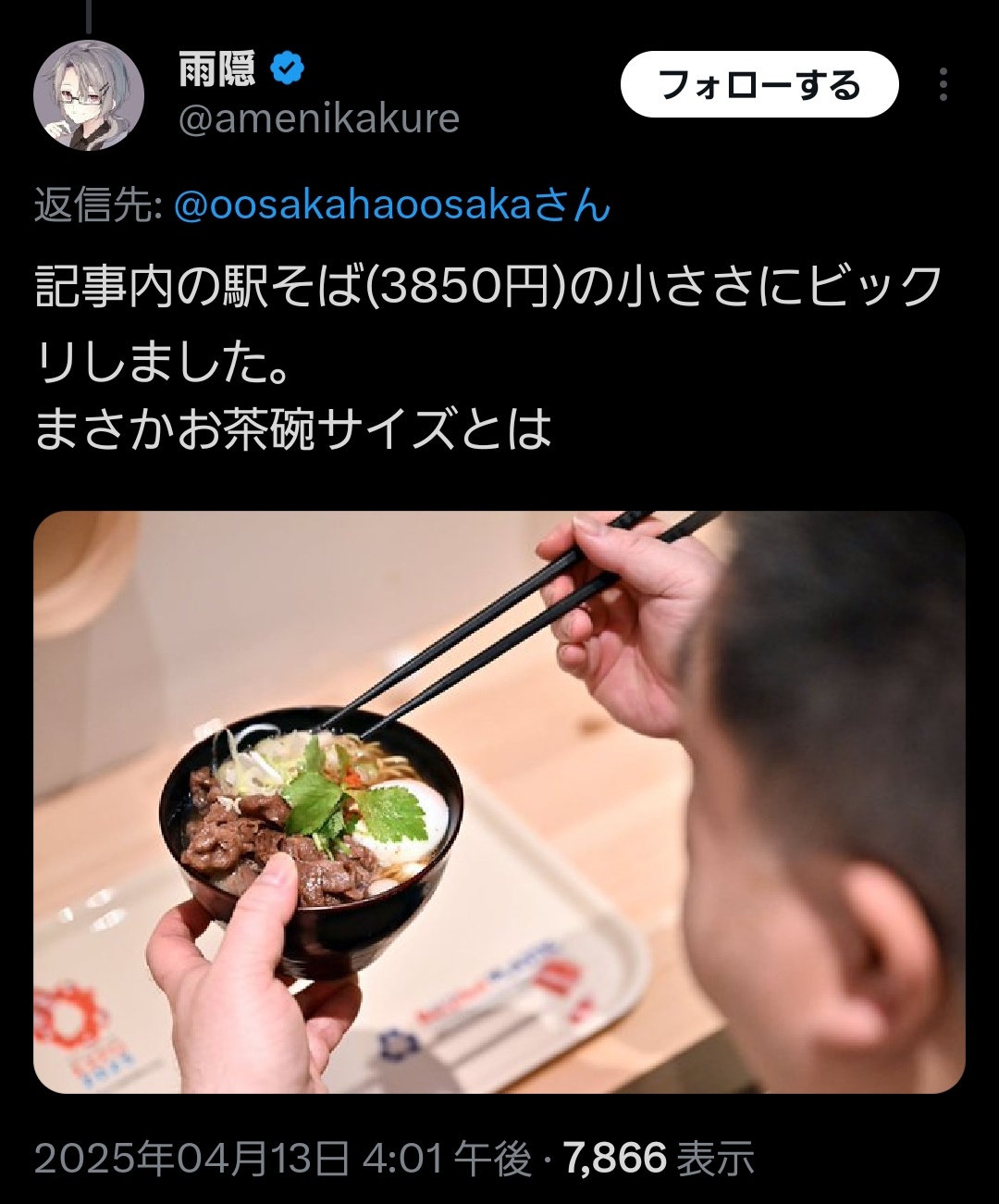 【画像】万博駅そば3850円🤔貴殿らはいくら払える?