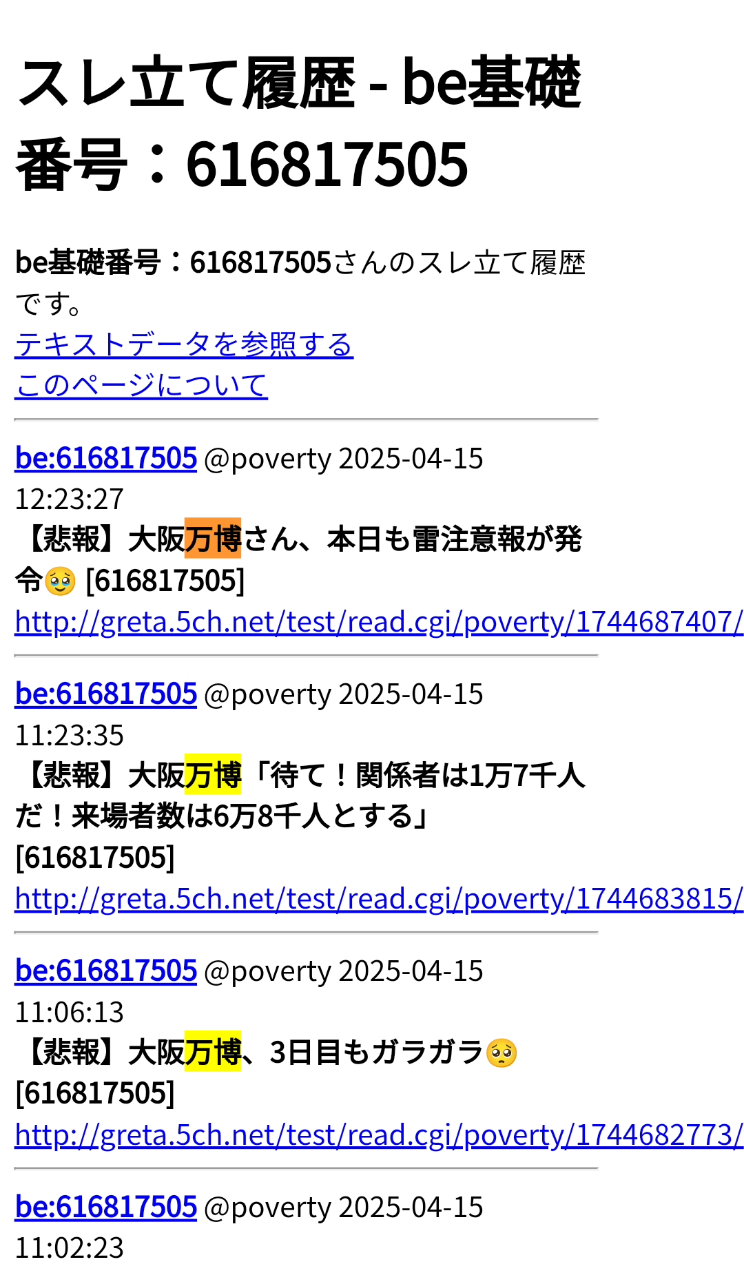 万博に親でも殺されたのかよ - 22 名前:一般よりも上級の名無しさん 投稿日時:2025/04/15(火) 13:31:52.28 ID:KJodNU/dr
