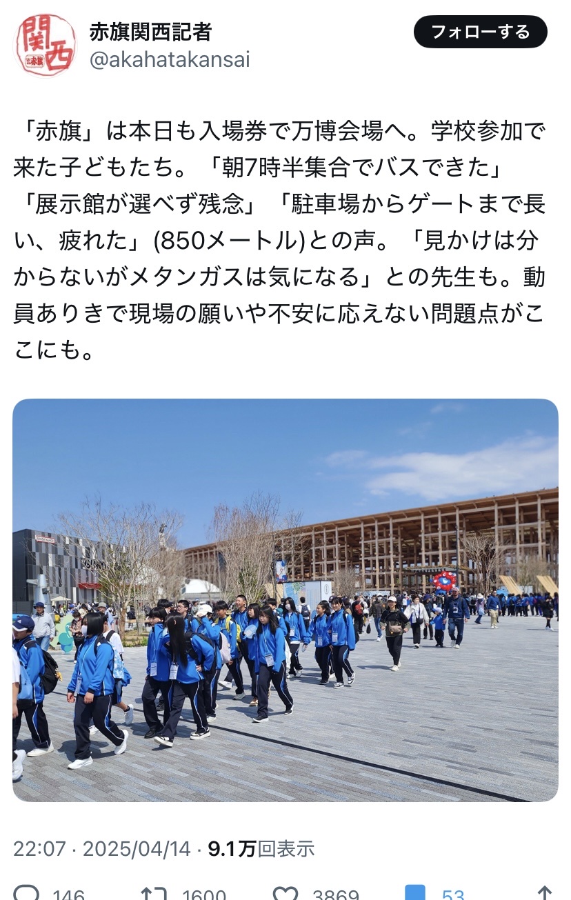 赤旗「よーし、今日も入場料払ってネガキャンするぞ!」