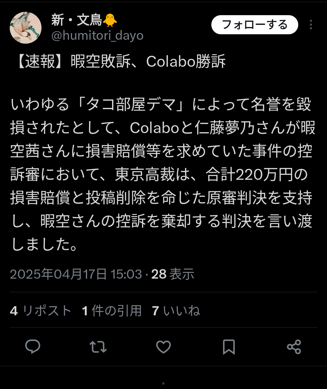 ただデマが交ざってたりした場合には訴えられる可能性あるけど全て自己責任で - 27 名前:一般よりも上級の名無しさん 投稿日時:2025/04/17(木) 15:17:46.71 ID:g5pyDfSX0