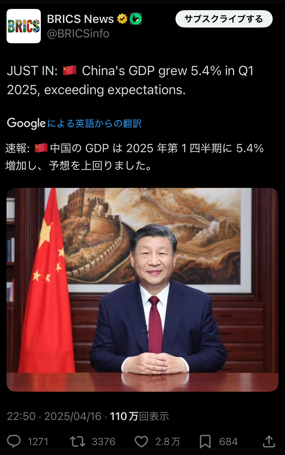 一昔前だったら「中国の発表する数字なんか信じられるかw」って強がりも言えたけど