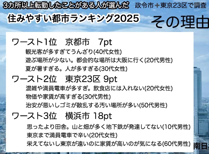 【大悲報】東京、転勤族が選ぶ「住みにくかった都市」堂々1位に輝くWWWWWWWWWWWWWW